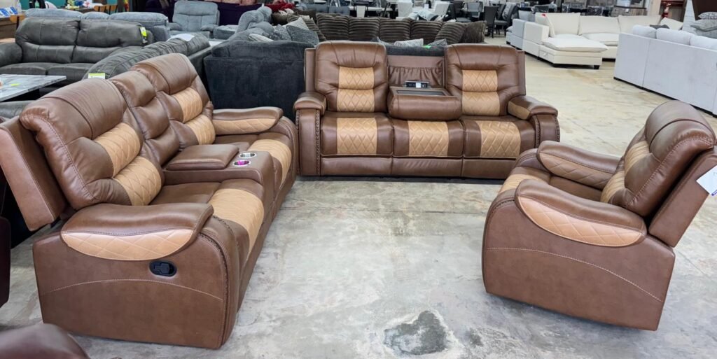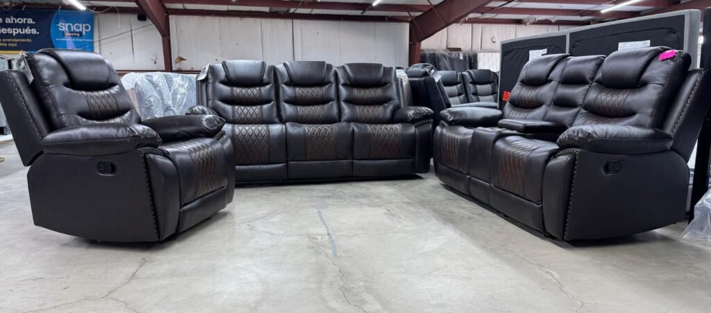 - Different color available free piece is set sofa loveseat, and recliner Bluetooth LED light speakers phone charger